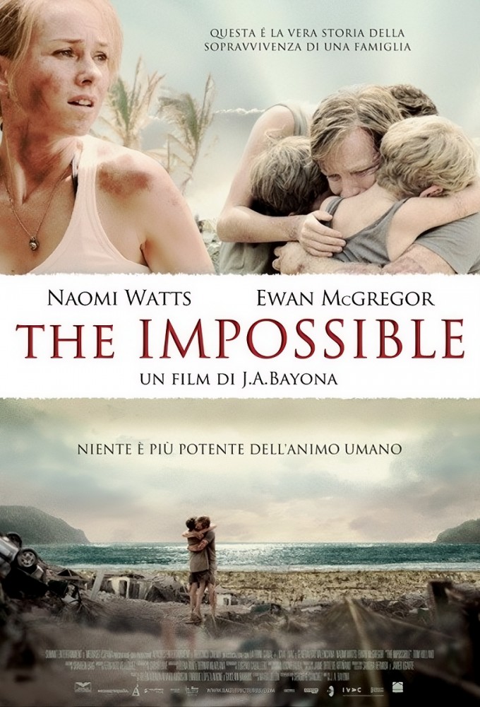 L’histoire d’une famille prise dans une des plus terribles catastrophes naturelles récentes. The Impossible raconte comment un couple et leurs enfants en vacances en Thaïlande sont séparés par le tsunami du 26 décembre 2004. Au milieu de centaines de milliers d’autres personnes, ils vont tenter de survivre et de se retrouver. D’après une histoire vraie.