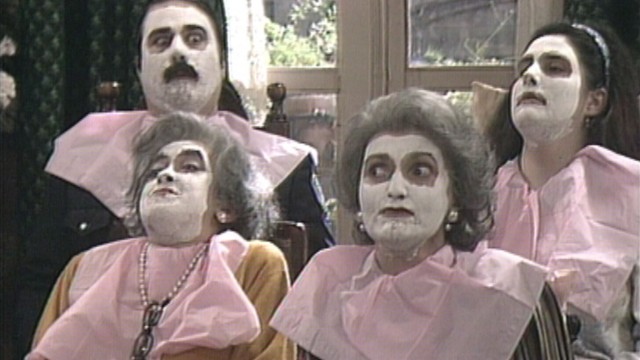 Octubre. Primers dies de tardor. Al pis de les Teresines es treballa frenèticament amb l'ajuda de diferents persones, totes conegudes del barri, per acabar una comanda destinada a la festivitat de Tots Sants. Aquesta feina dóna peu a diversos comentaris sobre aquesta data tan assenyalada. Paral·lelament, a l'escala, els veïns estan molt preocupats perquè se sent pudor de gas, i es crea una psicosi d'explosió.