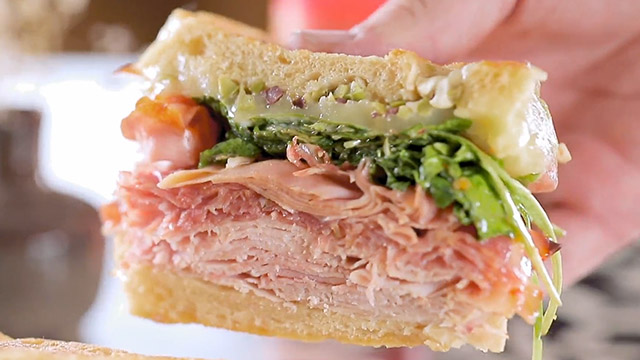Guy Fieri's diggin' into killer combos between the bread! There's big-time Texas BBQ with fine dining flair in Dallas, pairing the-bomb brisket with smoked mushroom duxelles and piling prime-time pork with apple slaw. Then, in Gainesville, Fla., a real-deal deli is plating a spot-on Cubano and a turkey-short rib mashup, au-jus style. And a Baton Rouge, La., joint is puttin' their stamp on po'boys, dishing out boudin balls with remoulade, plus rockin' roast beef and shrimp with a Creole kick.