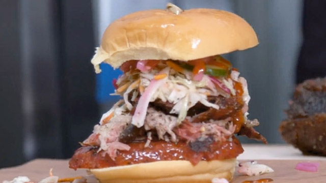 Guy Fieri's divin' into a smorgasbord of texture and flavor! A BBQ bistro in Sherman Oaks, Calif., is cookin' up eclectic riffs on the classics like sticky ribs with a Korean twist and the-bomb brisket noodles. There's an upscale diner from a husband-and-wife team in Cincinnati, doctoring up a dirty French burger with mouthwatering mornay sauce and platin' top-notch chili crunch chicken nuggets. And in Austin, Texas, a funky veggie-forward spot is firin' up from-scratch vegan patties with a chipotle pesto punch, plus a primo pasta margarita.