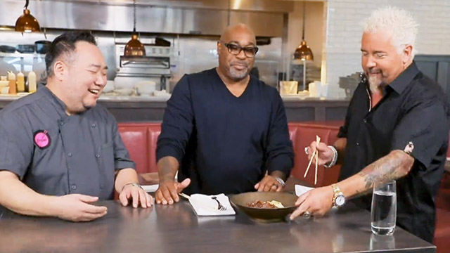 Guy Fieri's diving into a festival of flavor! In Sherman Oaks, Calif., actor Joe Mantegna joins the party at an Italian-vegan joint breakin' all the rules with a righteous ricotta pie and lights-out lasagna. There's a husband-and-wife team in Cincinnati specializing in farm-to-table and fermentation, plating a prime-time pork burger with kimchi, plus smoked turkey and sauerkraut on sourdough. And a legit Laotian-American spot in Austin, Texas, is mixin' up mama's recipes, servin' the-bomb beef in a crispy rice salad and killer coconut escolar ceviche.