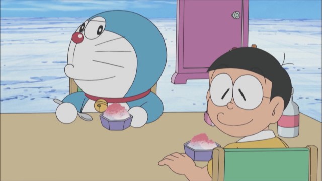 「変身、変身、また変身」 にげ足がおそく、ジャイアンにボコボコにされてしまったのび太は、「ウマみたいに足がはやくて、ゾウみたいにつよくなりたい」とつぶやく。 そのことばを聞いたドラえもんは、『変身ドリンク』を取りだす。それを飲んで、なりたい動物のイメージを強く心にえがくと、そのとおりに変身することができるという。 まずはウマに変身してみようと思った、のび太。だが、変身スピードがゆっくりで、なかなか変わらない上、きちんとウマをイメージすることができず、おかしなウマになってしまい…!? 「大氷山の小さな家」 「アツくてアツくて、夏休みの宿題に集中できない…!」とバテバテの、のび太。そんなのび太を見ていたドラえもんは、巨大な流氷について書かれた新聞記事を思い出す。 さっそく『どこでもドア』で、巨大流氷の上におりたった2人。涼しくて、ながめも最高な流氷がすっかり気に入り、『氷ざいくごて』を使って、氷上に勉強部屋を作りはじめる。 その後、のび太はみんなを流氷によんで、いっしょにあそぶことに…!?
