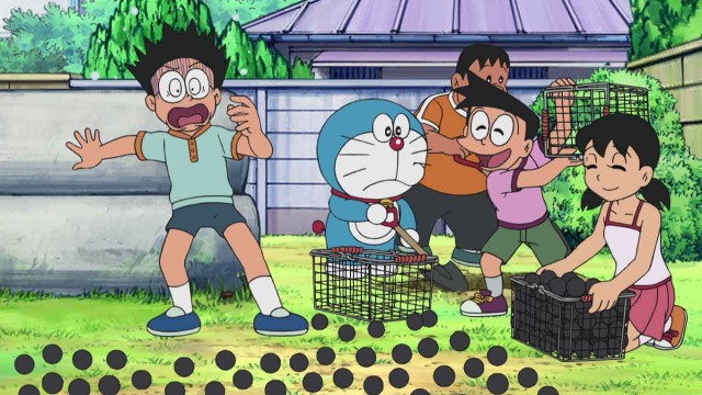 「花火を育てよう!」 熱を出し、楽しみにしていた花火大会に行くことができなかったのび太は、スネ夫から自分の考えた花火があがり、大盛り上がりだったとじまんされ、くやしくてしかたがない。そんなのび太を見かねたドラえもんは、花火の“タネ”を作ることができる『花火花セット』を取り出す。打ち上げてみたい花火の絵を紙に描いて入れると、その絵の打ち上げ花火ができるのだという。 ためしに、ドラえもんは星を、のび太はしずかの顔の絵を描いて、機械に入れてみたところ、黒いタネが2つ出てくる。それを庭の植木鉢にまき、肥料と水をあげたところ、芽がにょきにょきと伸び、つぼみがふくらんで赤く色づいた直後、星の花火が上がった! それを見たのび太は急いで自分の花火の植木鉢を持ち、しずかに見せに行く。 その後、上がった花火を見ていたジャイアンとスネ夫も加わり、みんなで手作りの花火大会を開くことにするが…!? 「分身ハンマー」 宿題がどっさりあるにもかかわらず、しずかに遊びに誘われ、どうしたらいいか決められないのび太。ひとりジャンケンで決めようとするが、なかなか勝負がつかない…。その様子を見たドラえもんは、頭をたたくと分身が生まれ、体を二つに分けることができるという『分身ハンマー』を取り出す。 さっそく、のび太の頭をハンマーで叩いたところ、少しだけ色のうすいのび太が現れる。宿題は分身に任せ、ドラえもんとともにしずかの家へと向かうのび太。するとその途中で、ジャイアンとスネ夫から野球にさそわれてしまう。 断りきれないのび太は、再び分身ハンマーで分身を出そうとドラえもんにハンマーで頭を叩いてもらうが、一度は分離したもののすぐに元に戻ってしまう。そこでもう一度強く叩いたところ、また少し色のうすい分身が飛び出した。分身は野球に参加し、のび太はしずかの家に向かうが…!?