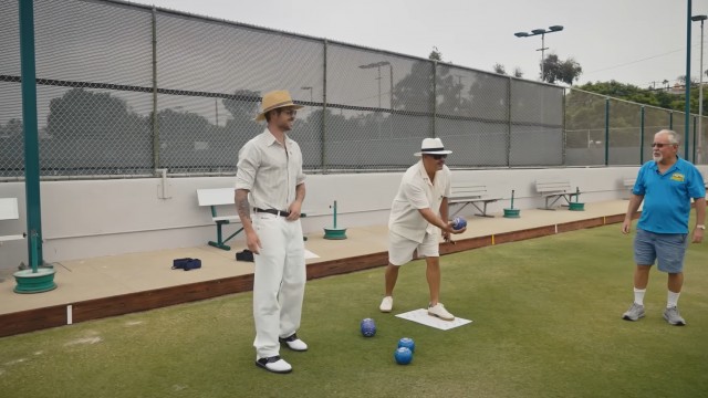Dylan and Rob pick up a new sport: Lawn Bowling. Hermosa Beach’s most experienced lawn bowler, Tony Crutchfield fawns over Dylan’s natural ability – Rob... not so much.