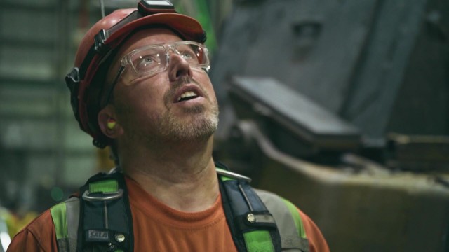 Les mécaniciens retirent la boîte d’engrenage d’un camion de 240 tonnes. Les techniciens électriques déplacent un câble à haute tension.