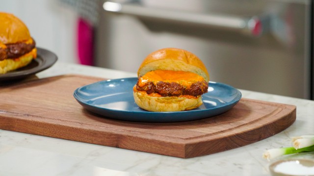 Urvashi Pitre makes Korean-style burgers with a red chile paste.