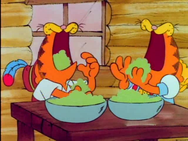 In a parody of Ponchielli's "Dance of the Hours", Jon forces Garfield to go on yet another diet. Going without breakfast, Garfield tries to get Odie's bone. When that fails, Garfield decides the best way to get food is to appeal to Ann McPherson, the chairwoman of "a group that makes sure pets are not mistreated."