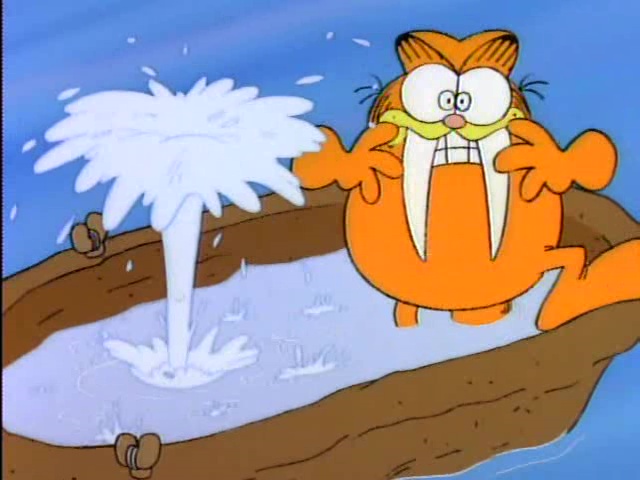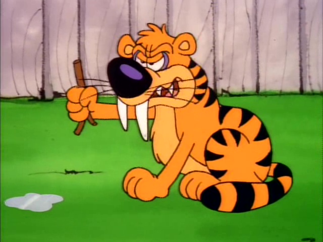 The local museum has just acquired an actual saber-toothed tiger for their new exibit. The tiger, not wanting to be caged up, devises a plan of escape. He takes tusks from another exibit and some industrial-strength adhesive and glues them into Garfield's mouth. Now the museum curators are after Garfield while the saber-toothed tiger is lounging in Garfield's house! Jon and Odie notice the difference, and call the police and the zoo to help rid them of the menace, but the tiger won't come out. Can Garfield catch the prehistoric predator and get his normal life back?