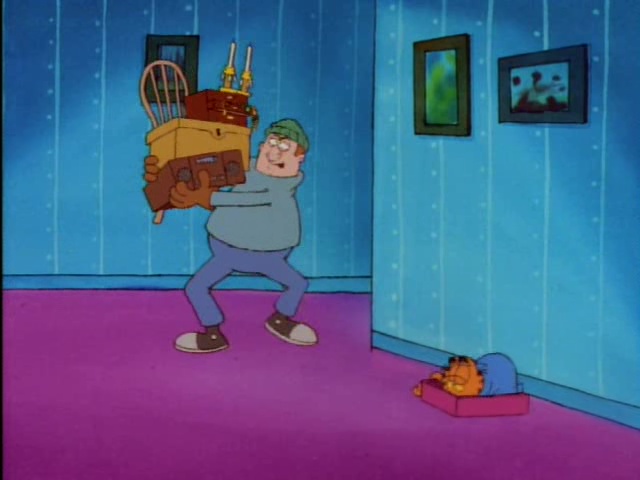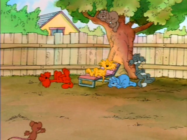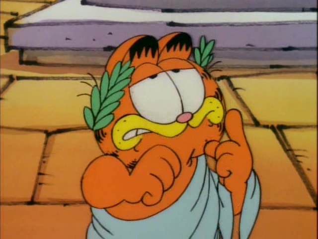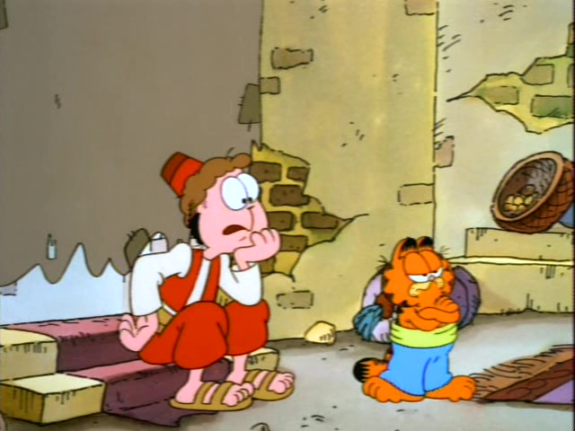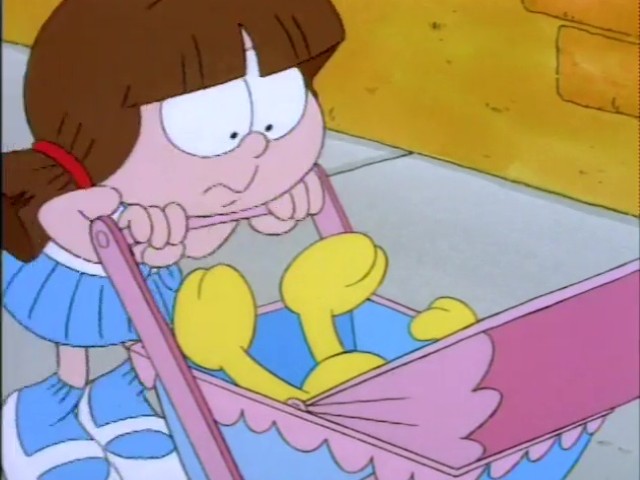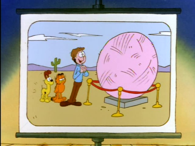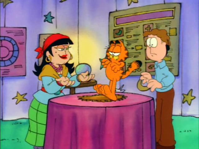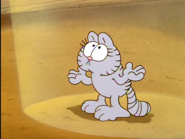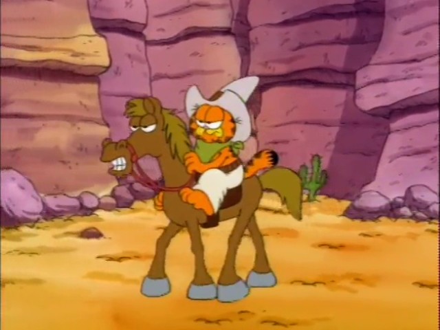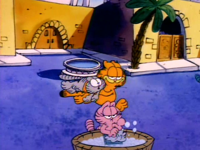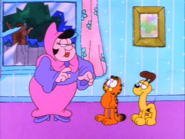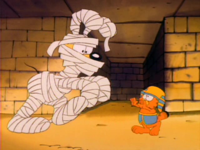 Garfield plays multiple roles including ancient Egyptian royalty, a fairyland kitten, a movie 'stunt cat" and more! This one-hour-long television adaptation features ten separate segments, just like the book upon which it's based. Six of these were adapted from the book, and an additional four were newly written for the show. "Babes and Bullets" was adapted into a television special of its own, "Garfield's Babes and Bullets," the following year, and won an Emmy Award for Outstanding Animated Program of 1989. "The Vikings", the "Exterminators," and "Primal Self" have never been adapted for television.