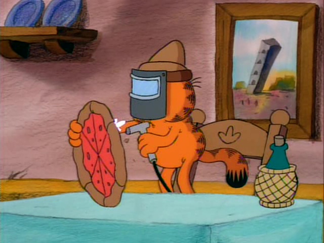 Garfield, Jon, and Odie travel to an out-of-the-way Italian restaurant which serves, in Garfield's recollection, the best Italian food he has ever eaten. He also finds that a large chain of pizzerias, Papa Plastique, whose food is so bad even Garfield wouldn't eat them, wants to buy Mama Manicotti's recipes.