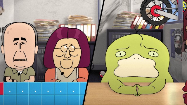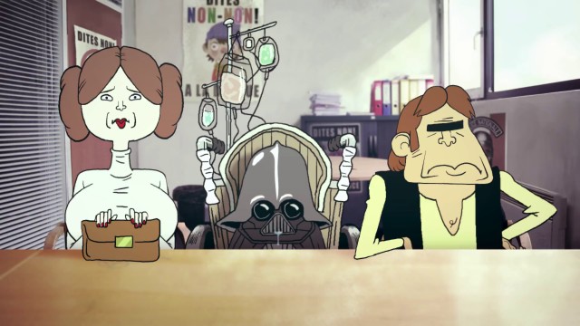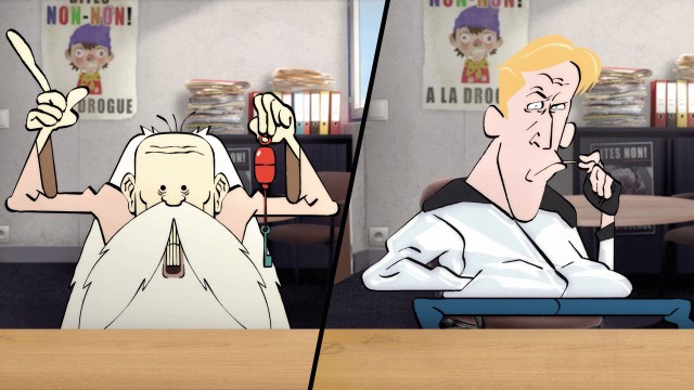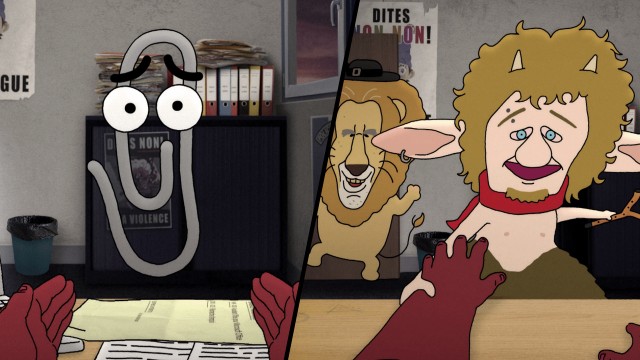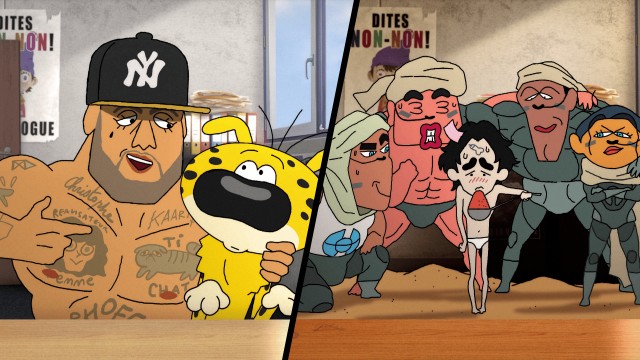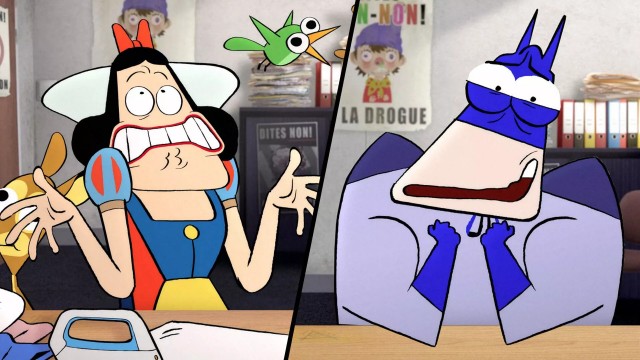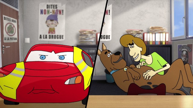 Des personnages de dessins animés ou de films sont tournés en dérision et affublés des pires travers. Ils se confient à l'assistance sociale.