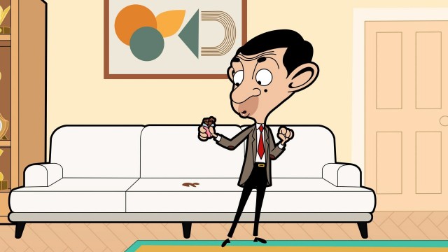 As Mr Bean tests out Mr Paliwal’s brand-new white sofa, he feels the squish of a chocolate bar in his back pocket and realises it’s gone all over the white cushions.