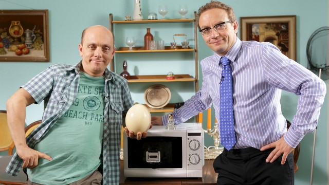 Bernhard Hoëcker und Wigald Boning experimentieren in einem verlassenen Haus: Sie testen Mikrowellen, kochen Dosenessen auf einem Herd und schlagen mithilfe eines Bootsmotors Sahne.