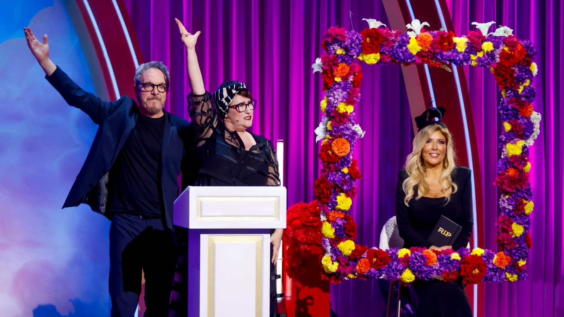 Quattro vip defunti: Francesco Totti, Selvaggia Lucarelli, Elettra Lamborghini e Roberto Saviano assistono al loro funerale. Sei comici vivi e spietati: Stefano Rapone, Edoardo Ferrario, Beatrice Arnera, Eleazaro Rossi, Corrado Nuzzo e Maria Di Biase li onorano con un roast crudele. Officia Michela Giraud. Si ride fino all’ultimo respiro. Benvenuti a Roast In Peace.