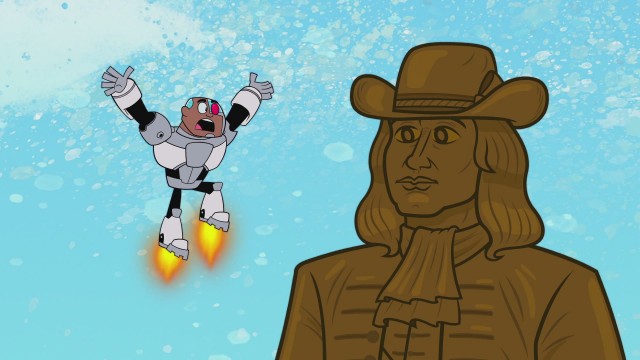 While visiting Philadelphia, the Titans join forces with the Bacon Brothers to stop William Penn's rampage on the city.