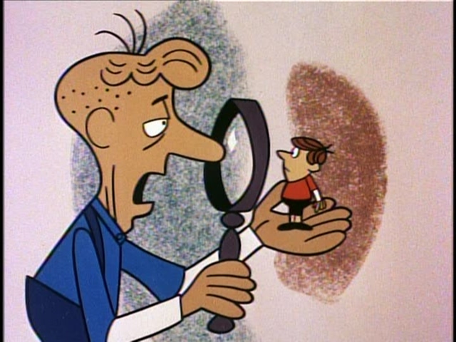 The origins of Mr. Peabody and the WABAC machine: Mr. Peabody finds Sherman in the street being beaten up by some bigger boys. At first, he doesn't think that he's the right sort of boy- but when he sees how he is treated in the orphanage, Peabody decides to adopt him. At first, there's a problem when they won't let a dog adopt a boy- but he goes to court, and the judge decides that if a boy can have a dog, then a dog can have a boy! Sherman comes to live with Mr. Peabody, who builds him the Wayback Machine in order to keep him busy. They go back in time to Rome, and then to see Ben Franklin.