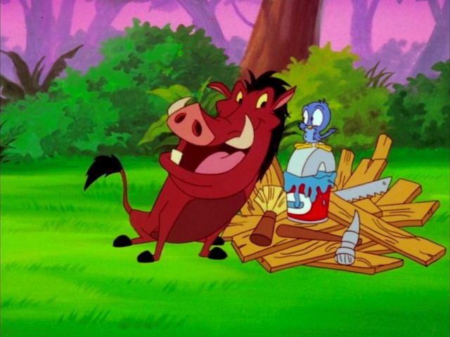 Pumbaa builds a house for Little Jimmy.