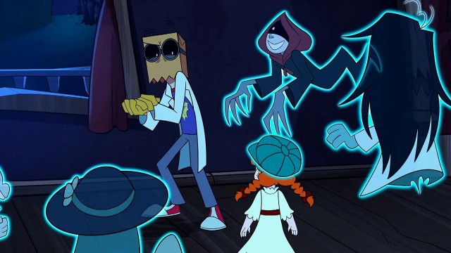 5.0.5., dressed like a maid, enters the room and fixes a Black Hat painting. Then, Demencia comes down the wall and moves it back to its original place, with 5.0.5. fixes it. This goes on and on until the Black Hat in the portrait itself slams it against the painting, sending the whole manor askew, sending 5.0.5. and Demencia out of the manor.