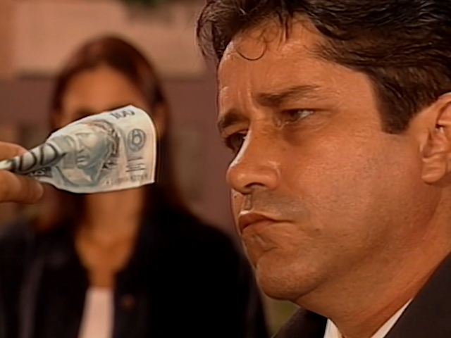 Cruzeirinho and Merreca disguise themselves as students. Paula tells Olga that she is not going back with Roberto. Mocotó sees Cachorrão's body. Hericles finds the money and shows it to Inspector França.