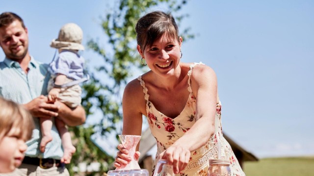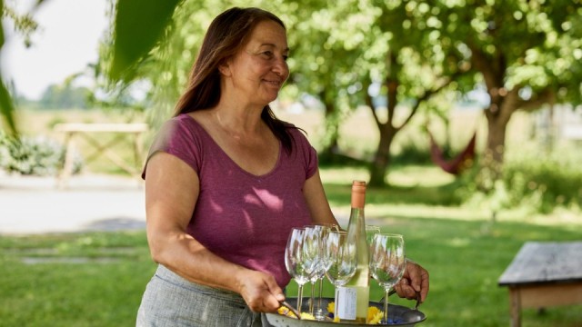 Die 25-jährige Schwäbin Marie-Luise Hornstein ist die Jüngste in der Landfrauenrunde. Mary-Lu, wie sie alle nennen, ist gelernte Winzerin und arbeitet im elterlichen Betrieb mit, zu dem auch eine Brennerei und eine sogenannte „Besenwirtschaft“ gehören. Das Weingut liegt nur einen Steinwurf entfernt vom Bodensee. Die Reben profitieren vom besonderen Klima der Region. Mary-Lu und zwei ihrer Geschwister wollen den Betrieb in Nonnenhorn, Landkreis Lindau, einmal übernehmen. Die Fortführung der langen Winzer-Tradition ist also gesichert.