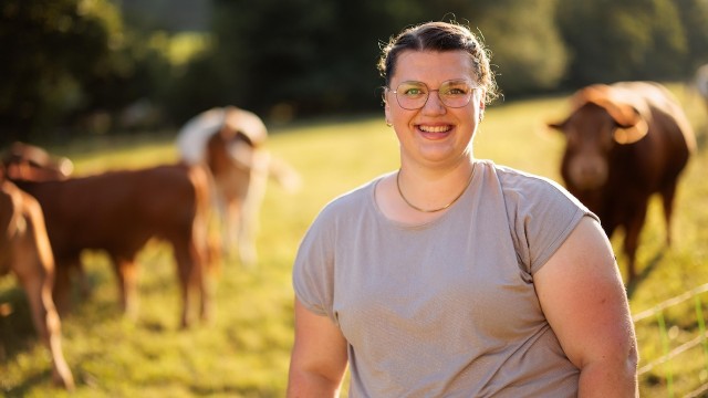 Barbara Weiherer ist die Bäuerin am Hof und folgt damit einer Familientradition – seit drei Generationen heiraten auf dem Simmernhof die Männer ein. Mit der nächsten Generation kann sich das ändern: Barbara und ihr Mann Simon haben zwei kleine Buben. Die Familie aus Mossendorf in der Oberpfalz kümmert sich um eine Herde Angus-Rinder in Mutterkuhhaltung und bietet Urlaub auf dem Bauernhof an.