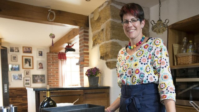 Gastgeberin dieser "Landfrauenküche" ist Anne Leichtenstern aus Oberfranken. Für die 52-jährige ist „Hornochse“ kein Schimpfwort. Auf ihrem Biohof in Prebitz im Landkreis Bayreuth züchten sie und ihr Mann Longhorn-Rinder, mächtige Tiere mit Hörnern bis zu 2,50 Meter Spannweite. Als Westernfans hatte das Paar die besondere Rinderrasse aus den USA schon länger im Auge und brachte sie 2009 nach Oberfranken. Mit 100 Tieren haben die Leichtensterns derzeit die größte Longhorn-Zucht Europas. Und damit die Arbeit auf ihrem Biohof nicht ausgeht, gibt es noch eine Herde Hereford-Rinder, Schweine, Gänse, Bienen, Hühner und eine Brennerei.