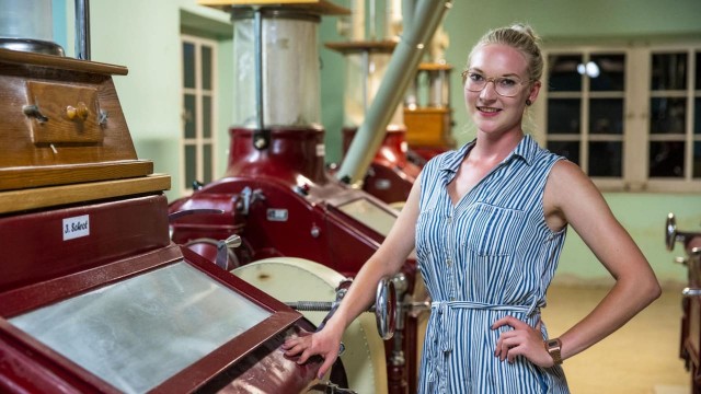 Carolin Meyer (26) ist nicht nur ausgebildete Winzerin und Weinbautechnikerin, sondern auch amtierende fränkische Weinkönigin und Mitglied der freiwilligen Feuerwehr in Castell. Sie hat den Hof ihrer Eltern in Greuth-Castell im Februar 2021 offiziell übernommen. Der Hof der Meyers ist kein klassisches Weingut, sondern ein Mischbetrieb. Neben drei Hektar Wein bauen sie auf 30 Hektar Zuckerrüben, Weizen, Getreide und Sonnenblumen an. Außerdem besitzen sie Streuobstwiesen. Aus dem Streuobst werden Edelobstbrände hergestellt – das zweite Standbein der Meyers. Carolins Vater ist der Brennmeister am Hof. Carolin wusste schon als Kind, dass sie den Hof eines Tages übernehmen will: „Klar, ich war ja Einzelkind und wenn ich es nicht mache, wer dann?“ (Text: BR Fernsehen)