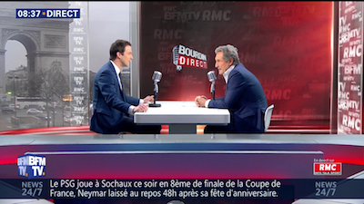 Guillaume Peltier, Député de Loir-et-Cher et vice-président du groupe "Les Républicains" à l'Assemblée, face à Jean-Jacques Bourdin.