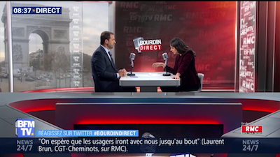 Christophe Castaner, Délégué général de La République en marche et Secrétaire d'État chargé des Relations avec le Parlement, face à Apolline de Malherbe.