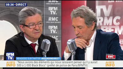 Jean-Luc Mélenchon, Député La France Insoumis des Bouches-du-Rhône, face à Jean-Jacques Bourdin.