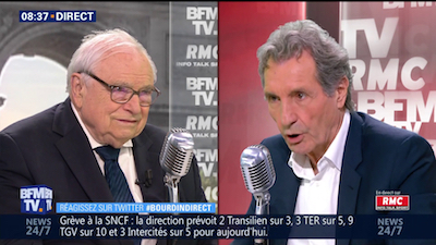 Maître Henri Leclerc, avocat et président d'honneur de la Ligue des Droits de l'homme, face à Jean-Jacques Bourdin.