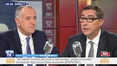 Didier Guillaume, ministre de l'Agriculture et de l'Alimentation, face à Laurent Neumann.