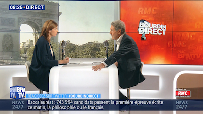 Aurore Bergé, députée LREM des Yvelines et porte-parole de La République en marche, face à Jean-Jacques Bourdin.