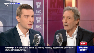 Jordan Bardella, vice-président du Rassemblement national, député européen ID, face à Jean-Jacques Bourdin.
