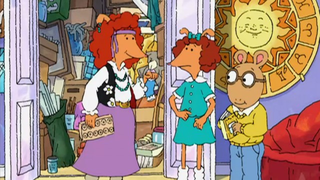 Arthur and Prunella are assigned to work together for the upcoming Earth Day fair at school, but he learns that she has kept several beloved items over the years and they have been piling up in her closet. / After Binky gets Muffy in trouble for using her cell phone in class, she learns that his real name and threatens to use this information as revenge against him.