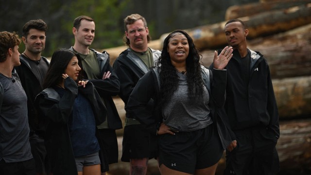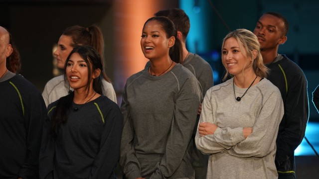 This four-stunt episode featured six former contestants from reality shows. The contestants were Omarosa (The Apprentice), Ryan Sutter (The Bachelorette), Ethan Zohn (Survivor Africa), Jenna Morasca (Survivor Amazon), Reichen Lehmkuhl (The Amazing Race), and Nikki McKibbin (American Idol). Stunt #1 (Dual heli rope crawl) Contestants would have to crawl across a rope hanging between two helicopters. As they made their way across, they would have to release up to 9 flags attached to the rope before dropping into the water below. The one man and the one woman to release the most flags the fastest would win a Capital One credit card worth $20,000. No one would be eliminated in this stunt. Stunt #2 (Gross obstacle course) Contestants would be handcuffed to a rail with one arm. Using their free hand, they would have to reach into a box of biting Amazon Tree Boas and unscrew four nuts and two washers from screws in the bottom of the cage, freeing a key. They would use the key to unl