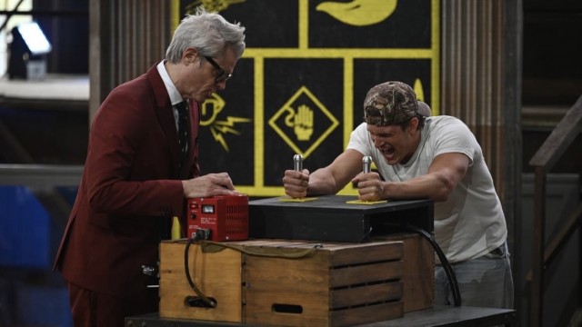 Stunt #1: Water Sack Contestants would be handcuffed, zipped up in a clear body bag, and dropped in a tank of water. They would have to use the key attached their wrist to unlock one of the cuffs, unzip the bag, swim to the surface, and grab a flag. The four contestants to complete this stunt the fastest would advance to the next round. The others would be eliminated. Stunt #2: Beetle Roach & Worm Transfer In a head-to-head race, contestants would be hung upside-down over a box of millipedes, Madagascar hissing cockroaches, and night crawlers. They would have 90 seconds to use their mouths to put the millipedes in a container on the right side of the box and the roaches in a container on the left side of the box. The contestant to sort the most bugs in each race would advance to the finals. The loser of each race would be eliminated. Stunt #3: Spinning Ledge Contestants would have to navigate a spinning cross-shaped wall high in the air. They would have of the release a fl