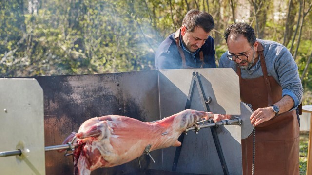 Auch beim Grillen ist das richtige Handwerkszeug das A und O. Für einen Koch das wichtigste Utensil - ein gutes Messer. Aber was macht ein Messer zu einem richtig guten? Und wie schleift man ein Messer richtig? Das alles lässt sich Adnan von den Messerprofis Luca und Florian erklären. Anschließend besucht er den Schäfer Stephan, denn Adnan will heute Ali mit einem ganzen Lamm herausfordern. Quasi Spanferkel, aber mit Lamm. Ali ist dabei - und schon bald dreht sich das Lamm am Spieß bei heißer Glut. Den Gästen hat's geschmeckt und so stoßen alle zum Abschluss an einem großen Feuer auf das feine Essen und das Leben an.
