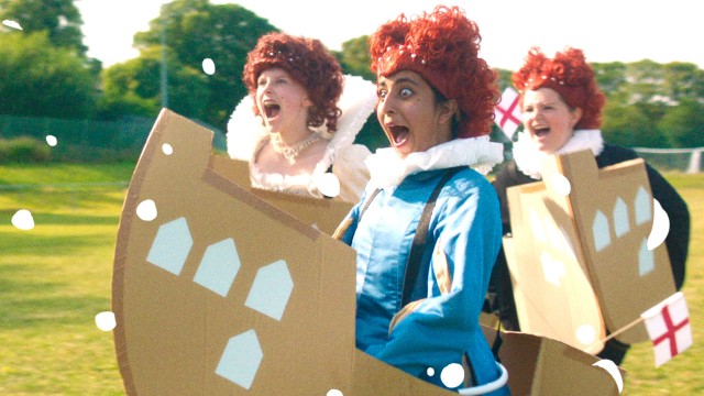 Jim is organising History Week, and everyone has a role in the historical re-enactment. Jessica is Queen Elizabeth, while Aoife plays Mary Queen of Scots - but who will win the war?