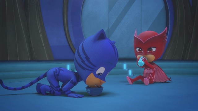 Motsuki steals Romeo's Baby Beam and turns the PJ Masks into bad-behaved babies.