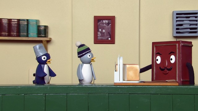 人形劇のテーマは「このみぞにそってすすめ!」。百科おじさんが、みぞをりようして、あるモノを切ろうとしています。それは、なにかな?ほかに「きょうのスレスレ」「いたちのたぬき」など。